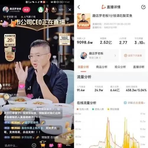 如果说罗敏只是想要砸钱换增长,停留在直播间涨粉和成交量的目标上。一切都应该是皆大欢喜,网友抢到了一分钱「福利」,贾乃亮参与了单场点赞和最高观看人数创抖音纪录的直播,罗敏涨了粉丝,打响了趣店预制菜的关注度,还拉升了趣店股价。