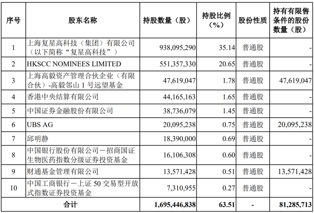 复星医药本次定增发行价格为42元/股,而7月26日收盘价为47.42元/股,已浮盈12.90%。以此计算,冯柳管理的高毅邻山基金已浮盈2.58亿元。此次定增完成后,高毅邻山基金将成为复星医药的第三大股东。