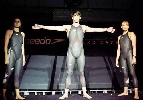 澳大利亚名将索普身着此款泳衣收获三枚金牌。众多游泳高手都试图通过使用带有V形背脊的“鲨鱼皮”联体泳衣来增强竞争力。据这种泳衣的制造商称,它可使游泳选手的速度增加3%。