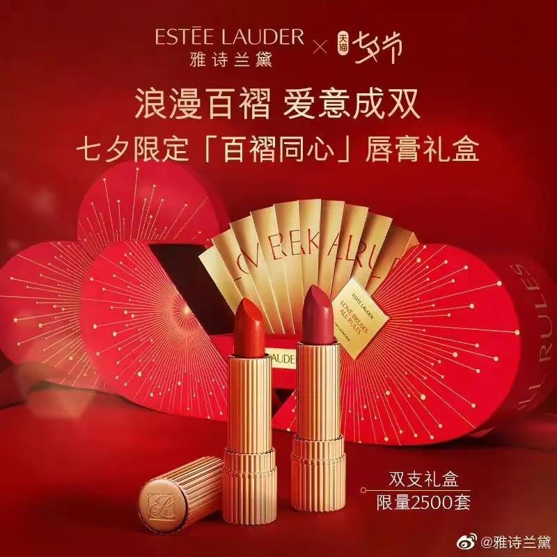 雅诗兰黛品牌就以“释爱无忌,七夕‘现’定”为主题,携品牌亚太区护肤级彩妆代言人李现倾献雅诗兰黛七夕限定礼盒,其中,雅诗兰黛百褶小金管,以柔金百褶管身为外形设计,以古典浪漫为誓约,致敬1984经典传奇。