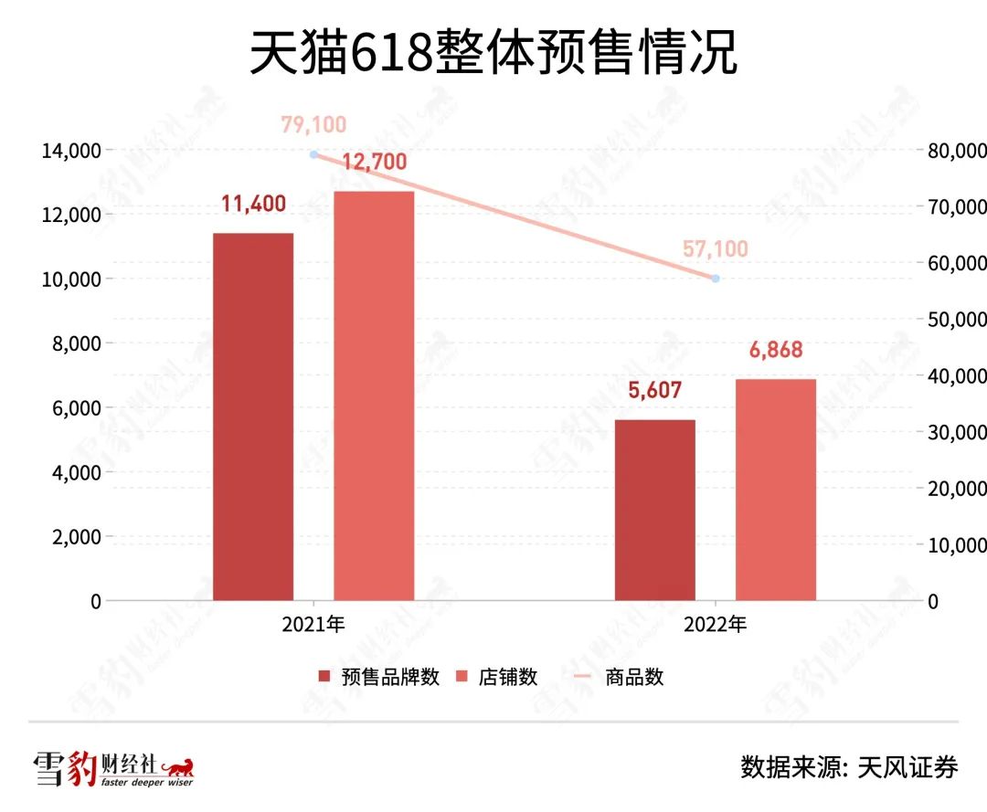 阿里已连续两年没有公布GMV,但天风证券在研报中称,据今年618预售情况,参与品牌数较去年同期下降51%,商品数下降35%。