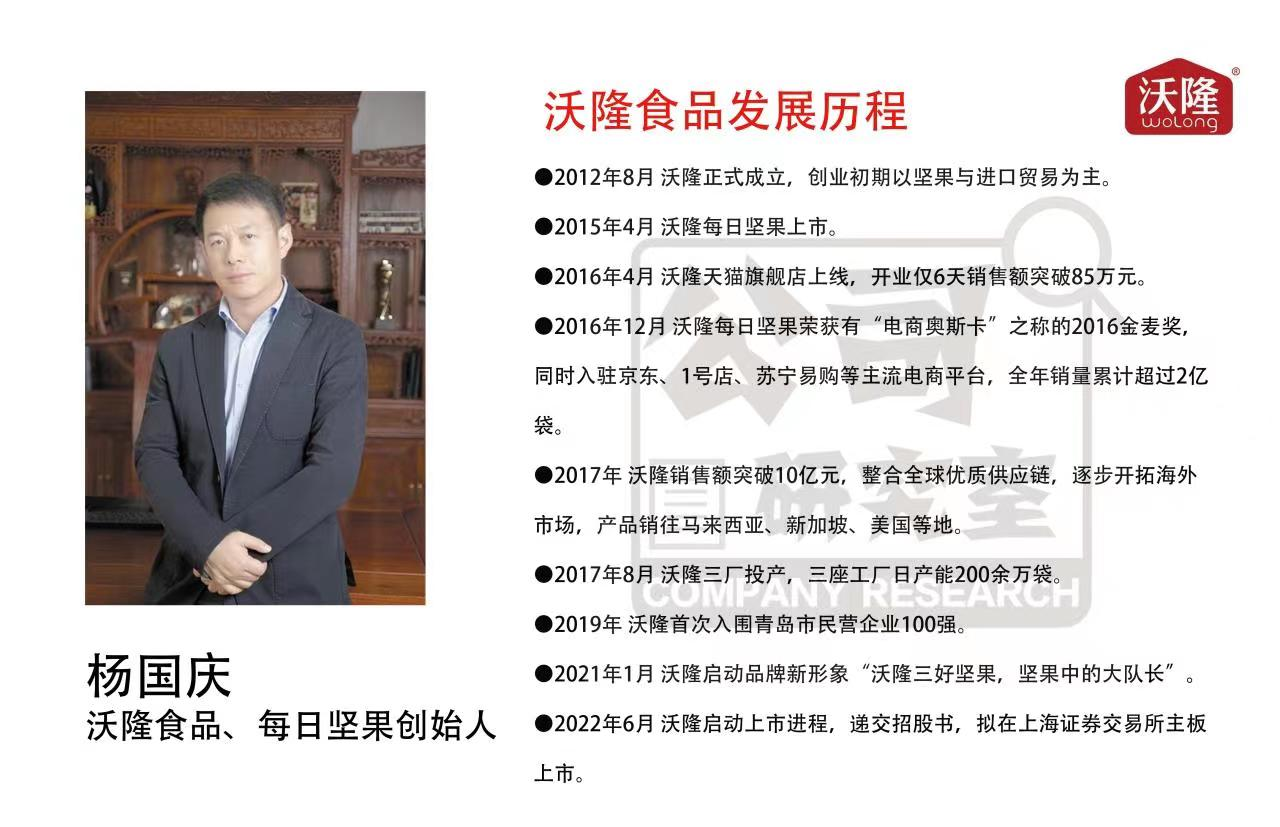 具体到沃隆食品,公司研究室认为,杨国庆专注坚果领域,坚持自主生产,其实无可厚非。这样做,不见得比那些疯狂烧钱,吸引流量的公司差。