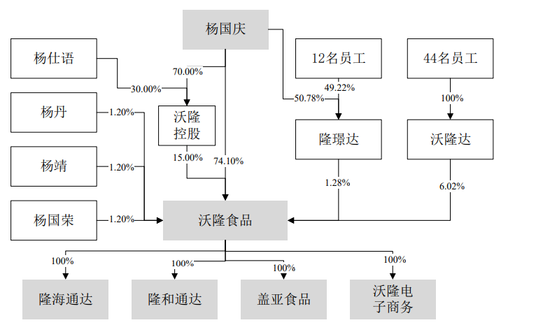 2016年5月,杨国庆、黄绪锋、张立业签署《青岛沃隆食品有限公司章程》,约定公司注册资本为 500万元,杨国庆、黄绪锋、张立业分别认缴出资 325万、100万、75万。