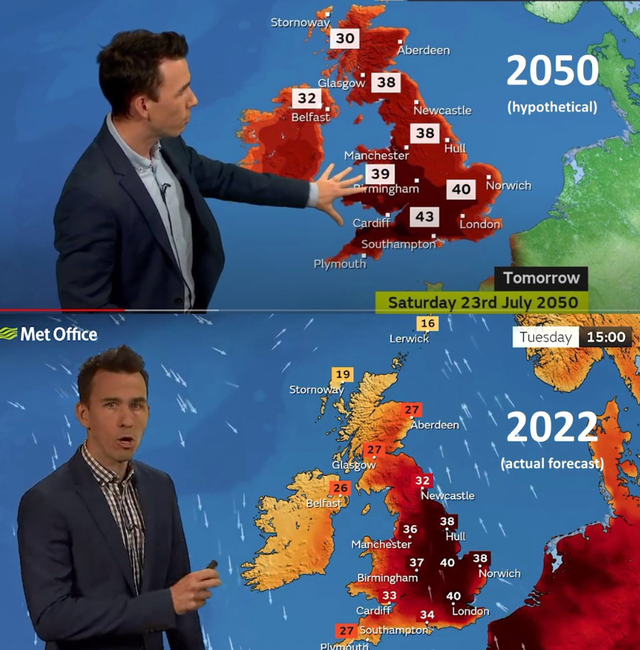 英国2022年的天气状况和预测的2050年天气状况对比图