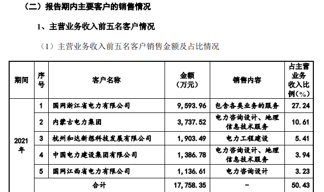 “招股书”显示,2019年-2021年,国网浙江省电力有限公司作为经纬股份的客户,分别为后者带来了0.64亿元、0.82亿元以及0.96亿元的营收,分别占总营收的22.45%、24.41%以及27.24%。可以发现,经纬股份对国网浙江省电力有限公司的依赖正在持续加深。