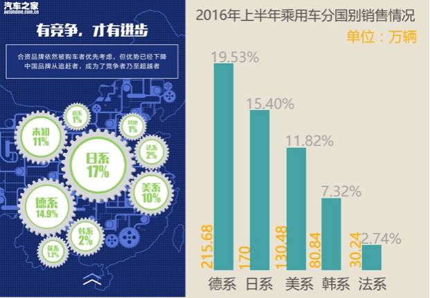 最近,中汽协网站上的一组数据让人觉得惊讶。2016年上半年,中国品牌乘用车共销售473.45万辆,占乘用车销售总量的42.88%,占有率比去年同期提升1.35个百分点。是什么原因让接近500万人购买中国品牌车型、且这个数字还在上升呢?