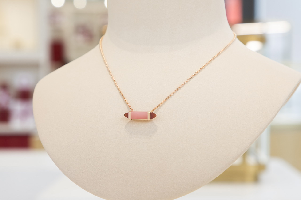 值得注意的是,今年七夕情人节卡地亚特别推出全新Les Berlingots de Cartier系列珠宝中国七夕限量版作品,其中采用半透明粉色玉髓与哑光质地红色碧玉制成的项链和戒指是中国市场专供商品。这一全新特供商品也是三间卡地亚七夕限时快闪店重点展示的新作。