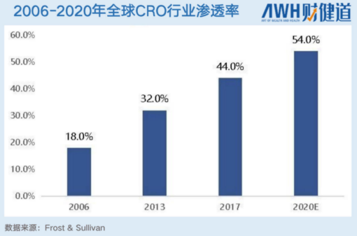 因此,全球研发外包率渗透率从2006年的18%左右,一路上升到2020年将近50%,增长不可谓不迅猛。