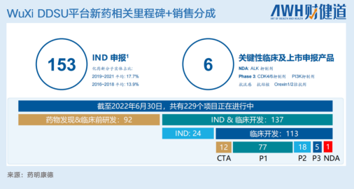 值得注意的是,除了已完成的订单之外,CRO企业未来一段时间的收入来自于已经在手尚未完成的订单。财报中提到,2022年上半年,药明康德累计完成153个项目的IND申报,并获得129个项目的临床试验批件。有1个项目处于上市申请阶段,有5个项目处于Ⅲ期临床试验,18个项目处于II期临床。