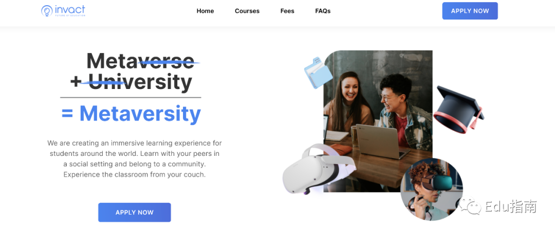 Edu指南了解到,Invact Metaversity 当前上线了为期16周的metaMBA课程,该课程总计费用20万印度卢比(约为2680美元)。从产品服务层面来看,该公司以VR虚拟现实等方式,应用到职业技能学习,包括市场营销、产品管理等教育培训中。