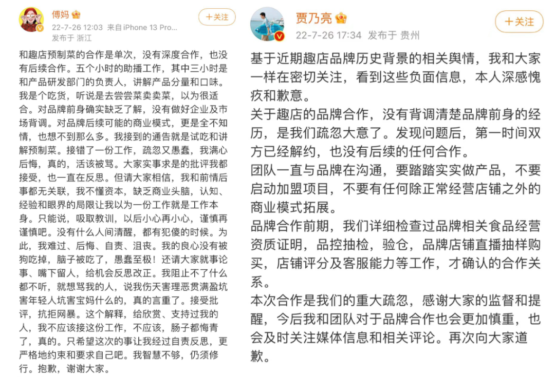 用一句话翻译下贾乃亮和傅首尔的道歉声明: