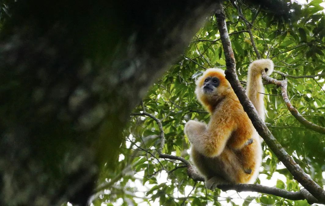 海南长臂猿属哺乳纲,灵长目,长臂猿科,长臂猿属,民间称为乌猿,是海南特有的灵长类动物、国家一级保护动物,头上长有一顶“黑帽”,是海南岛真正的原住“居民”,是海南热带雨林生态系统完整性和原真性的指示物种,目前只分布在海南热带雨林国家公园霸王岭片区。