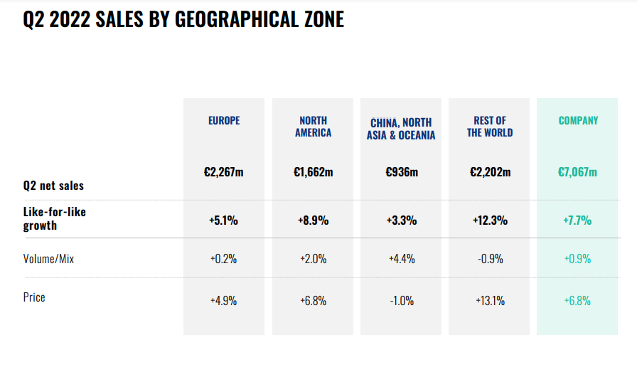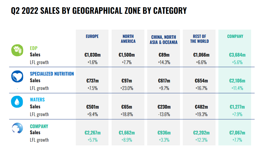 今天,拥有爱他美、脉动、依云等品牌的达能发布了2022半年报。