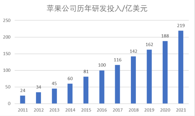 随后的10年里,苹果虽没有推出一款像样的产品,但这并不妨碍苹果成为华尔街和硅谷最赚钱的公司。自库克上任以来,苹果在研发上的投入一直增加,但新产品的步伐并没有明显加快,苹果的毛利率大约为38%,同梯队毛利率的公司研发投入比例在10%左右,谷歌母公司Alphabet、微软和亚马逊的研发支出在12个月营收中的占比平均达到14%,Facebook更是达到24%左右,而苹果是5%,这在当时的华尔街分析师看来还远远不够。