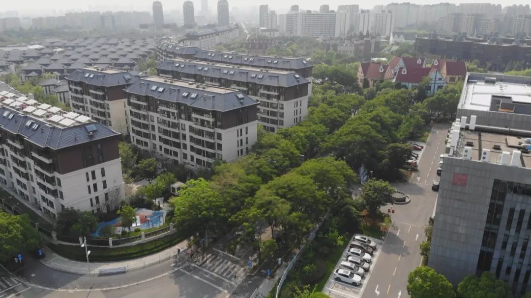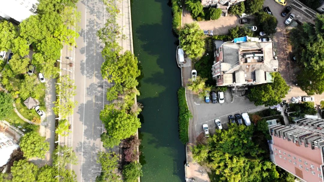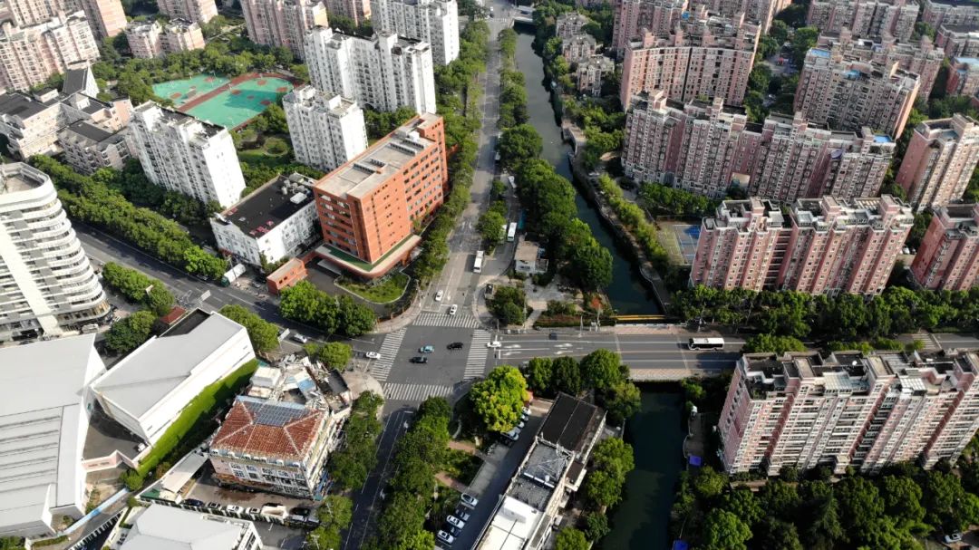 杨浦区吉浦路(政立路—万安路),伴着航拍镜头我们来到吉浦路,这里是杨浦行道树生态化试点区域,行道树的品种多为苦楝。