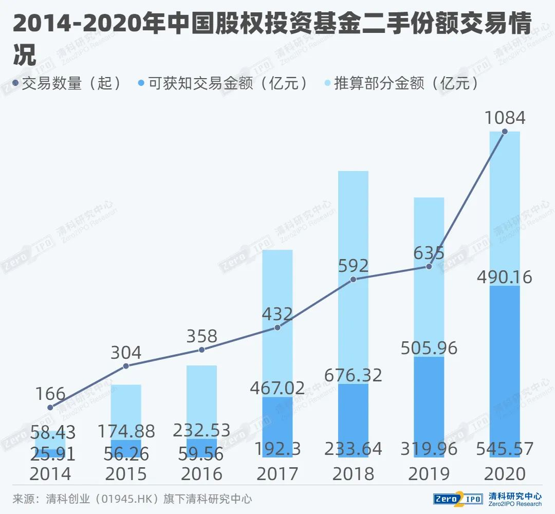 2020年,被视为中国S基金的元年。根据清科研究中心统计,2020年我国股权投资基金二手份额交易事件共发生1084起,可获知交易金额的案例共571个,交易金额为545.57亿元,剩余交易按照推算,1084起交易事件的交易金额可达1035.73亿元人民币。彼时,深创投设立首只S基金,探索解决创投行业退出难问题。