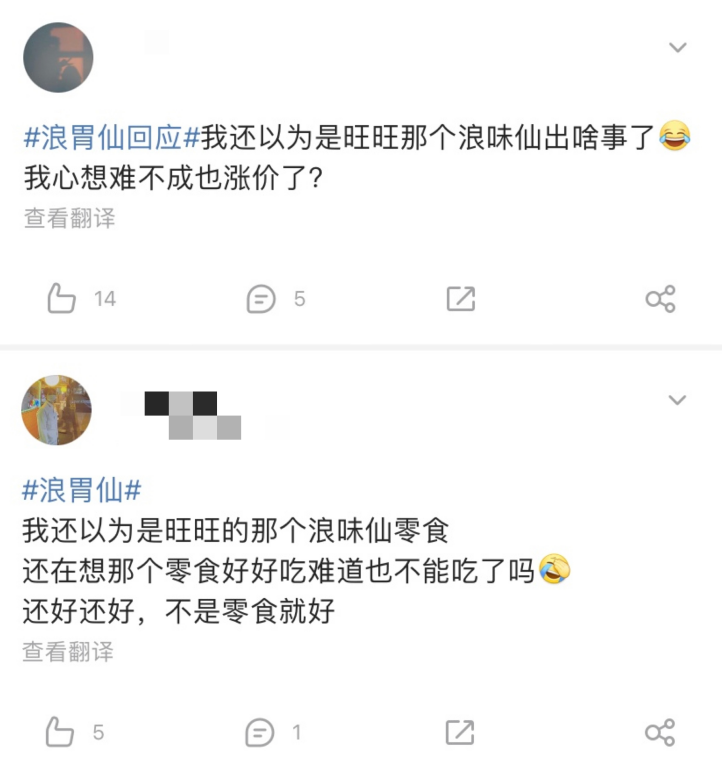 就像这位网友一样,看到微博热搜上旺旺“浪味仙”的类似名字,就心头一紧,生怕自己喜欢的零食涨价。