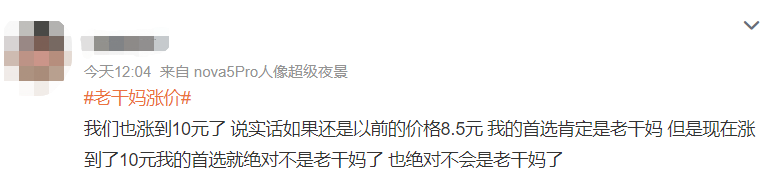 这并不意外,老干妈长期以来的核心竞争力,是在辣酱品类中做到了对7-10元价格带的掌控。涨价一定程度背离了价格带,打击了经销商的信心,也影响到消费者对“国民女神老干妈”称号的信任。