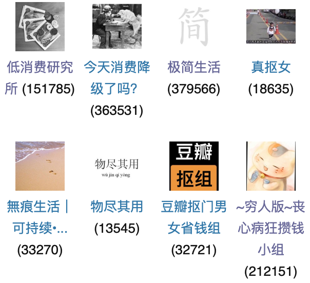 豆瓣上有各类反消费主义小组