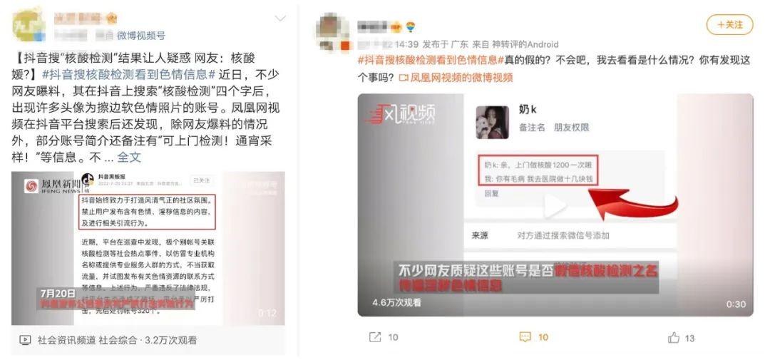 “抖音搜核酸检测看到色情信息?”7月22日,一些自媒体和微博大V几乎同时开始转发上述话题,经大规模扩散、密集转发后,让抖音一度陷入漩涡中心。