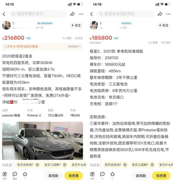 Polestar 2究竟有多少库存,外界无从知晓。时至今日,二手交易平台上依旧充斥着大量Polestar 2的销售信息。