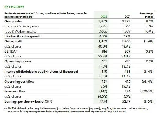 近日,瑞士香精香料巨头奇华顿表示,2022年上半年,虽然销售额增长8.3%,但净收入却减少了8.4%。集团表示,鉴于市场环境一直受到不利因素的冲击,投入和成本在持续增加,供应链也市场面临中断等问题,奇华顿计划在今年晚些时候继续涨价。