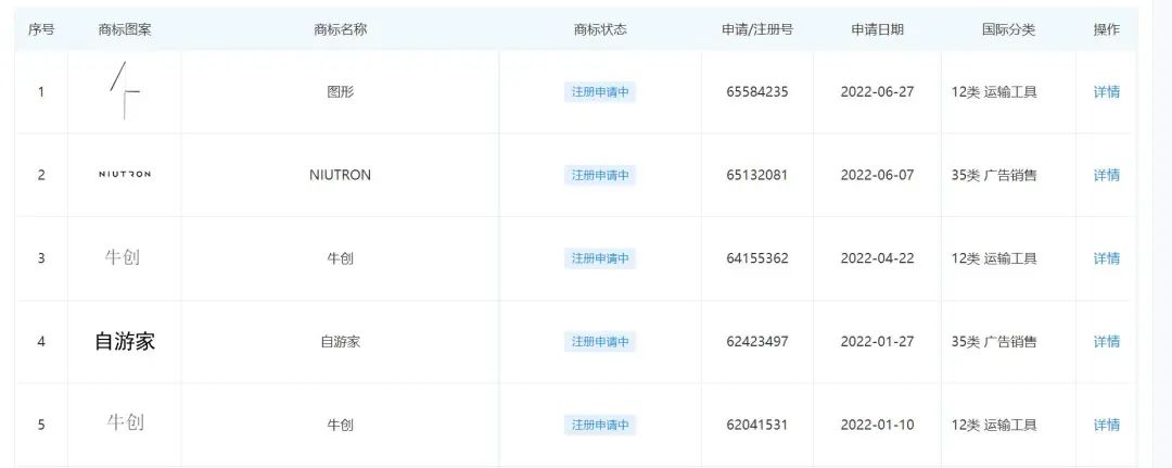 知情人士透露,“自游家”三个字的消失是因为这个品牌名暂时还没有申请下来,企查查显示的信息也佐证了这一观点。“商标注册成功之后,应该还可以重新启用。现在能确定的是,新车上面会有‘大乘汽车’四个字。”他说道。