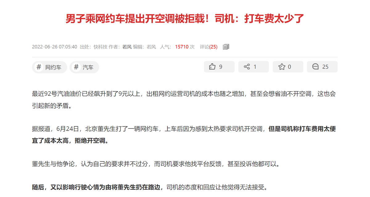 实际上,杭州市交通运输局在7月13日发布了关于《杭州市网络预约出租汽车车辆技术标准(征求意见稿)》,要改善出租车硬件条件。结合今年6月的一则乘客要求开空调被拒载的新闻看,硬件总归容易保障,服务却很难。