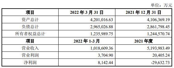 纺织集团目前总资产约420亿元,最近三年的主要经营业务为纺织品外贸、产业用纺织品生产、服装制造、房地产、纺织品类科学研究、劳务输出服务、教育培训和仓储物流等;2021年净利润亏损2.96亿元,今年一季度净利润为0.81亿元。