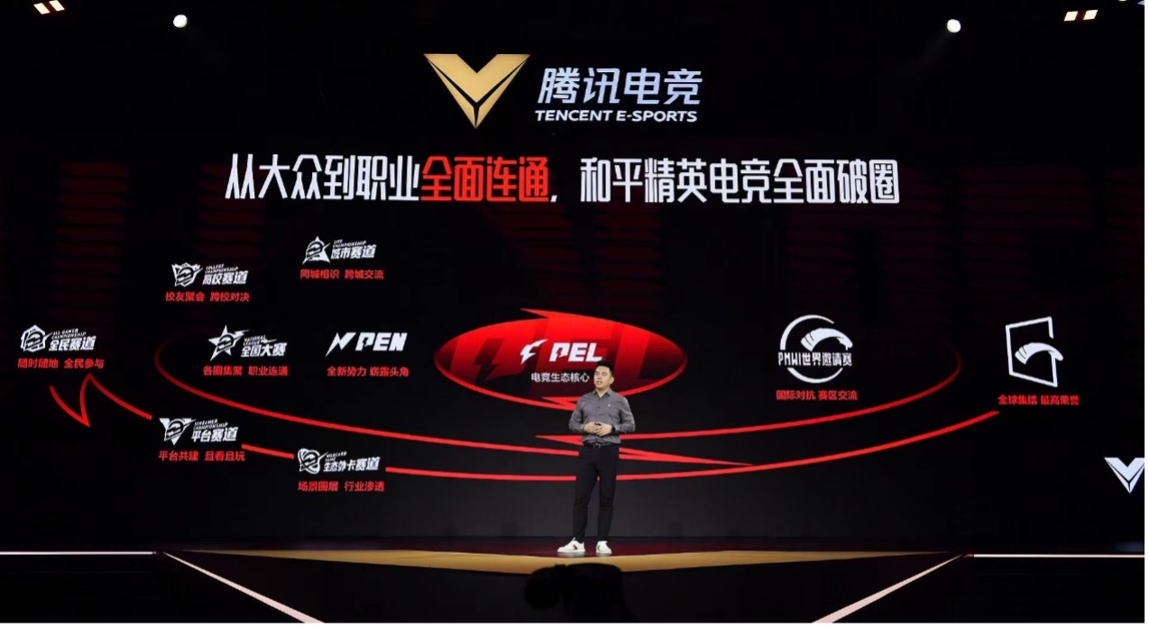大众赛事方面,《和平精英》电竞在原有的城市赛、高校赛、政企赛、名校赛、授权赛基础上升级为高校赛道、城市赛道、平台赛道、生态外卡赛道及全民赛道,打通大众赛原本独立的各赛道,并晋级到全国大赛总决赛,完成从大众到职业的连通。