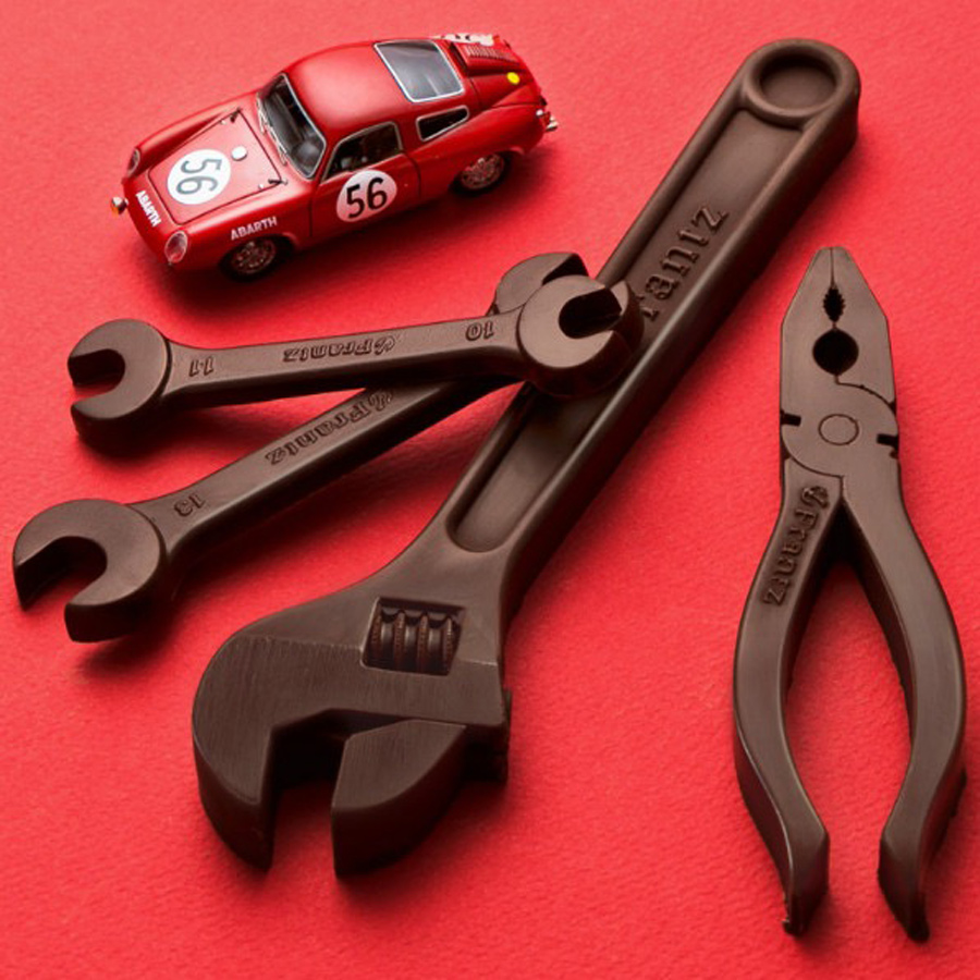大部分男生不是一个也是半个汽车迷,送汽车有点隆重,不如送一个可爱的工具箱,那怎么能把工具箱送得有创意?有一个说法,若要示爱,那就送女生玫瑰花,送男生巧克力。日本Frantz把巧克力做成了迷你工具的样子,惊喜和创意都可以给满分。售价约人民币300元。