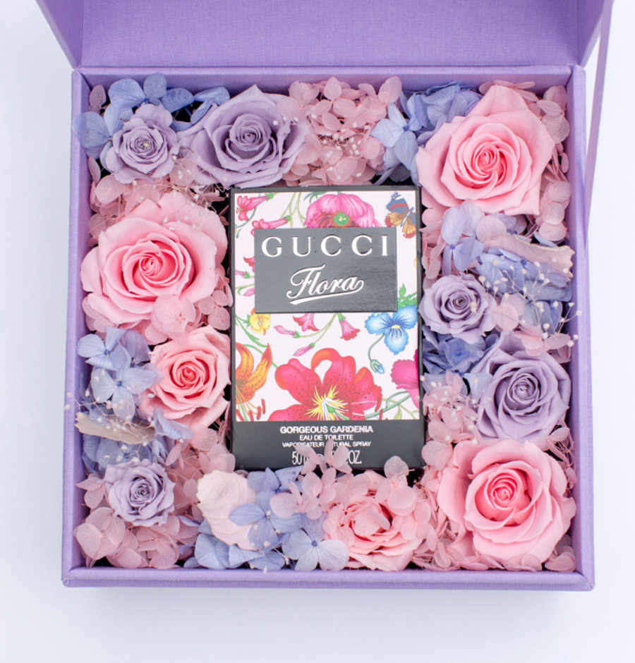 在永生花丛中藏一个惊喜,一瓶接受度很高的爱马仕尼罗河花园香水或者Gucci的淡香水。