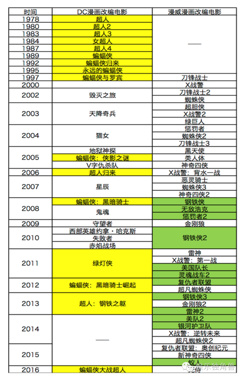 在这份不完整的列表图中,可以看出DC电影宇宙的核心人物比漫威早了三十年,然而漫威电影宇宙能在今天全面压制DC就因为漫威的先发制人,而先发制人其实源于其混乱的IP管理。