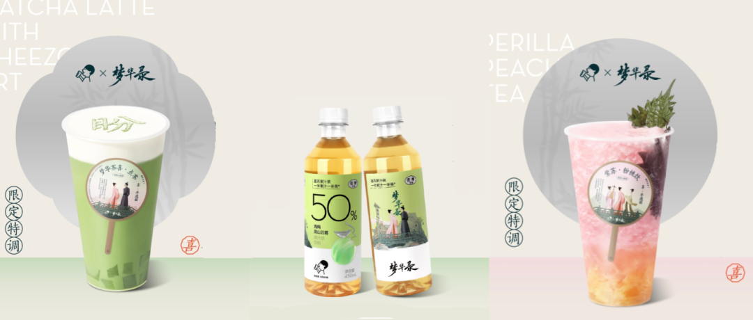 从联名产品来看,其实此次联名算是「天作之合」,喜茶根据电视剧剧情推出了新品「紫苏粉桃饮」「梦华茶喜点茶」,还原了剧中「紫苏饮子」「茶百戏」等内容,「梦华茶喜点茶」就更是和梦华录中的「点茶」关联性极强,普通消费者可能会被新奇的饮料吸引,梦华录剧粉可以借一杯茶体验剧中百味。