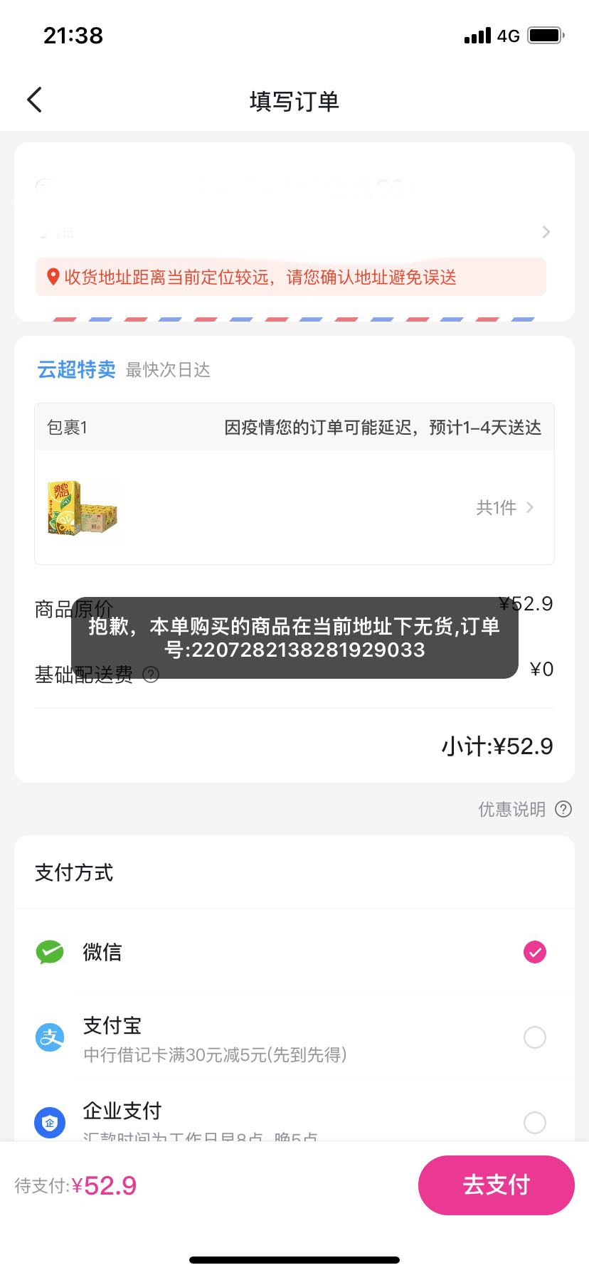 仅仅过了一周,每日优鲜便出现了变故。7月27日晚,每日优鲜主营前置仓业务便在全国范围内关停,APP内仅余次日达的云超特卖产品。而在一日后,7月28日晚间,带有次日达标签的商品也在北京等地显示“在当前地址下无货”。
