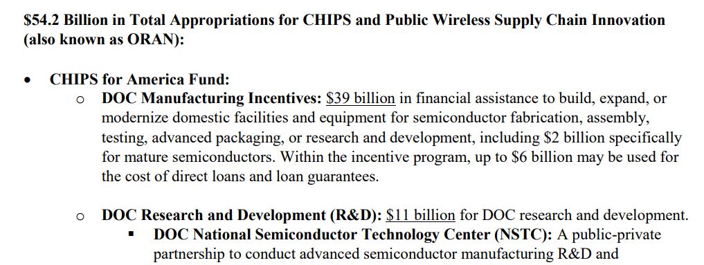 在2800亿美元中将有542亿美元用于芯片和公共无线供应链创新。其中390亿美元将用于资助美国芯片商,协助各公司新建、扩建、升级半导体生产、组装、检测、包装、研发所需设施和设备。