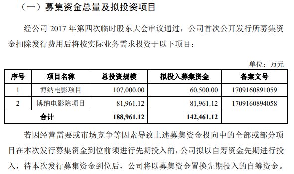 据招股书,此次募集资金主要用于投资博纳电影和博纳电影院两个项目,继续发力电影业务。