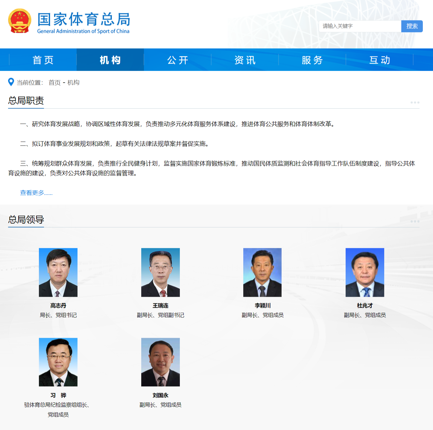 国家体育总局官网“总局领导”栏目信息显示,高志丹已任国家体育总局局长、党组书记。