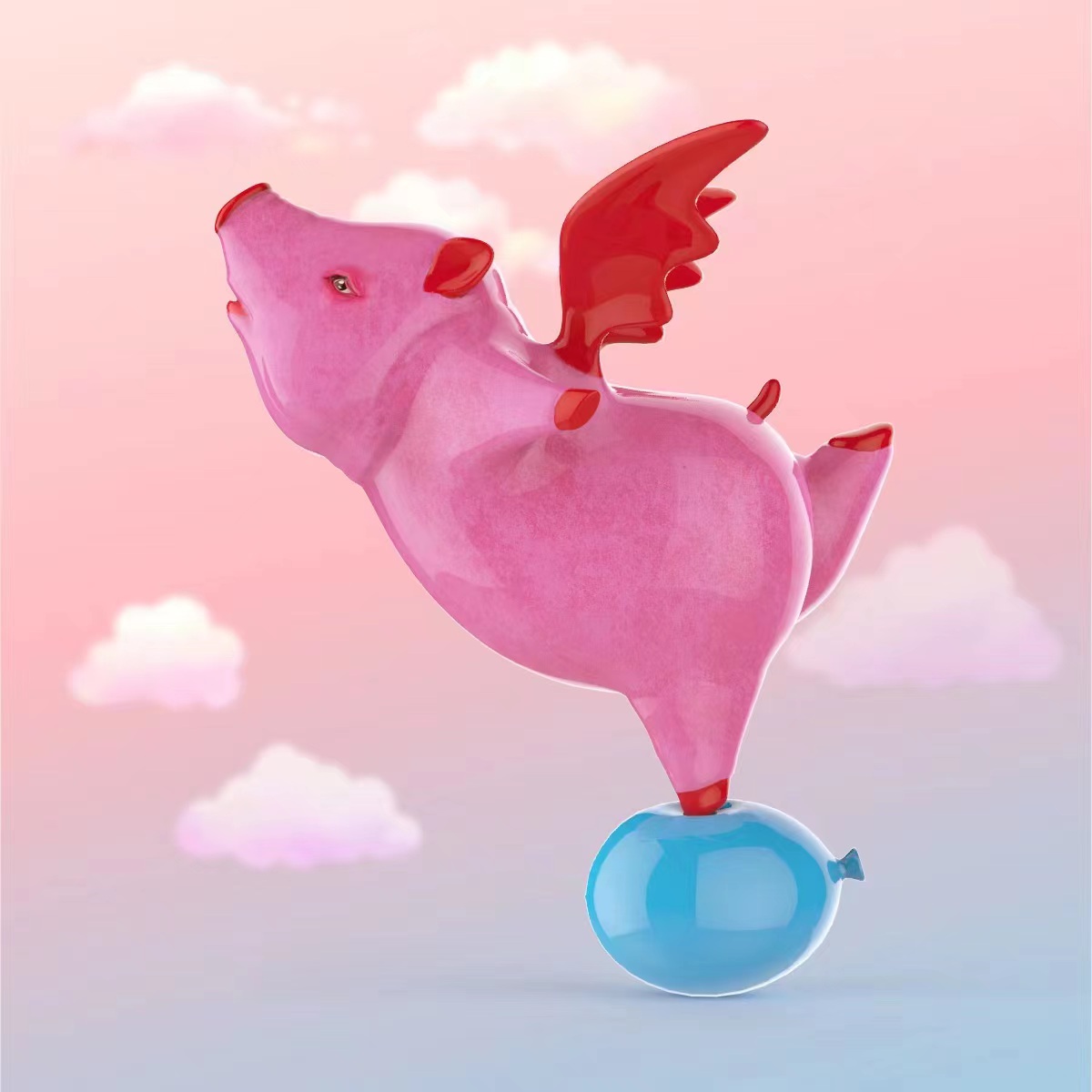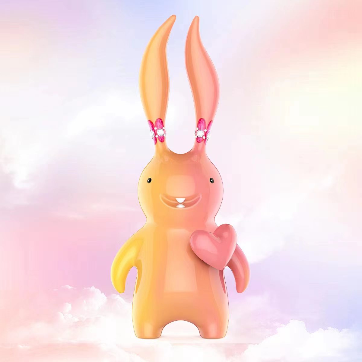 以景描情、以物托相思,艺术将“爱”拟物化。艺术家聂竞竹将可爱的猫咪形象作为作品的主视觉,融入潮流文化元素,将作品作为一种符号及古希腊传说的化身,启示并印证人们内心的斑斓,希翼而神秘;艺术家秦玮鸿则是选择了憨态可掬的粉色小猪和诙谐幽默的甲虫作为他两件作品的主人公,将它们拟人化,意旨在平凡的生活中感受并守护幸福。艺术家赵萧蒙寄情于俏皮可爱的兔子形象,以兔子的形象为载体,呈现当代人内心对美好爱情和浪漫的期待与向往。