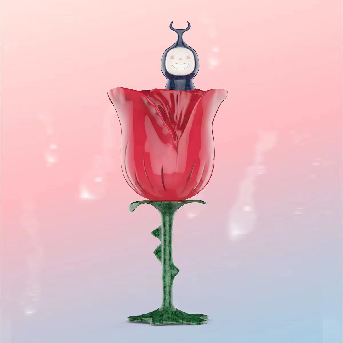 作品于2019年开始创作。象征爱情的玫瑰花里,有一只黑色的甲虫,咧着嘴,展示一个大大的微笑。在艺术家的眼里,这只小小的甲虫,正守护这娇嫩的玫瑰花,也守护着满世界的罗曼蒂克。