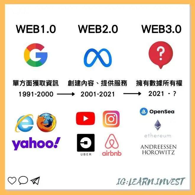 当下互联网正处于Web2.0时代,用户可以各大平台上自主地生产内容,即UGC(用户创造内容),而到了Web3.0的话,则会变成UGA(用户创造价值),最重要的是,我们自己创造的这份价值不再会被互联网巨头拿走,而是属于用户自己。