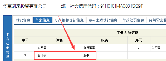 投趣网目前的股东——白小勇,是华赢凯来旗下一个叫华赢凯来投资有限公司的监事。