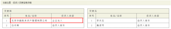 菜导调查华金所的工商信息可以看到,平台在2015年12月21日作过工商变更,把股东由“北京华赢凯来资产管理有限公司”、白丹青,变更为现在的李兵五、魏彦芳。