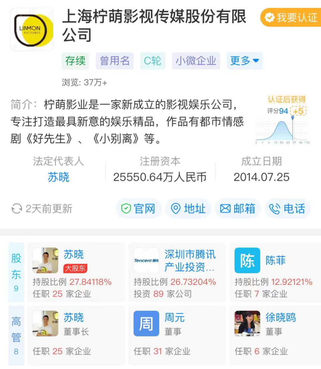 而柠萌影视的四位联合创始人,均来自于东方卫视。其中,创始人苏晓曾担任SMG东方卫视副总监。爆款剧《小欢喜》《三十而已》的标配,就是腾讯视频网播+东方卫视上星。