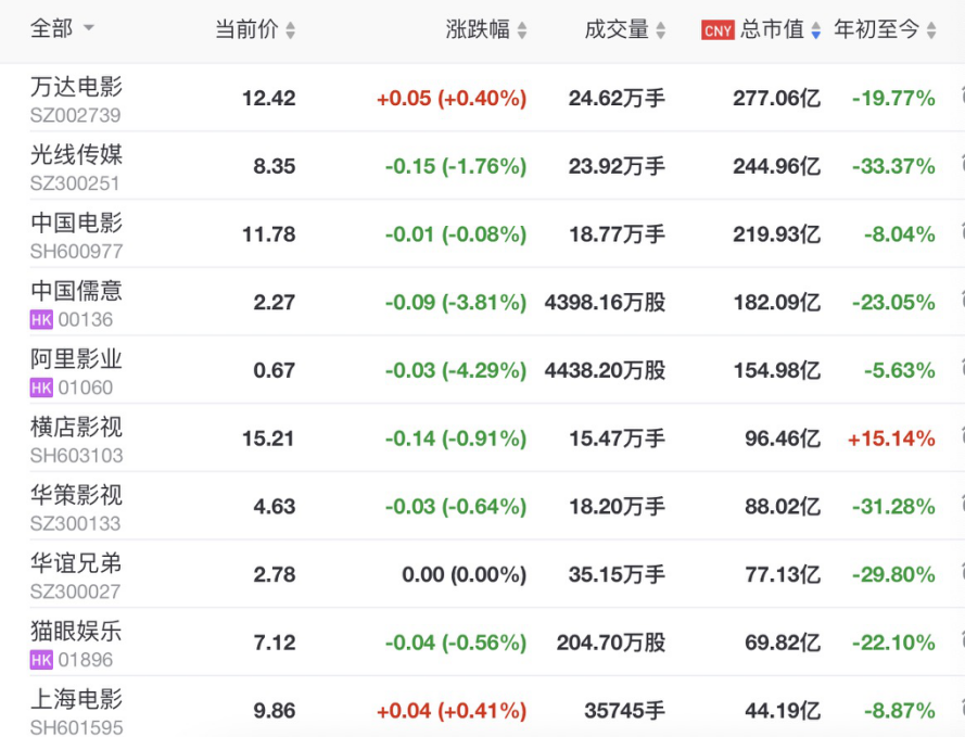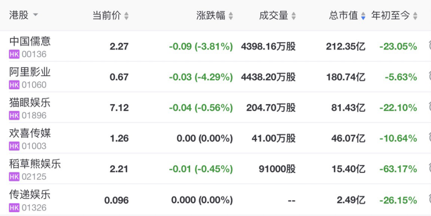港股市场目前的影视龙头是刚刚从恒腾网络更名为“中国儒意”的儒意影业。儒意凭着流媒体南瓜电影与大爆款《你好,李焕英》,目前仍被资本持续看好,市值达182亿人民币,高于阿里影业的155亿以及猫眼娱乐的69亿。
