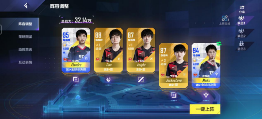 《英雄联盟电竞经理》全球制作人韩煦此前在接受游研社采访时表示,正式上线的版本中,玩家们用到的就是根据选手们在春季赛的表现设计出来的夏季赛选手卡。因此,春季赛中表现优异的RNG、EDG和TES等三支战队,就成为了目前的版本答案。来自这些战队的选手,单卡数值有着明显的优势。