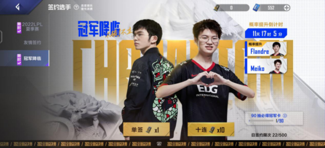 众所周知,作为LPL赛事的主办方,腾讯能够很轻松地获得所有战队选手的肖像权。这种肖像权上的便利,为他们制作不同的卡面提供了机会。当一张限定且稀有的选手卡片出现之后,粉丝们会产生强烈的攀比心理,收集欲望被进一步放大。部分限定活动,正是这种受众心理下运营方式的集中体现。