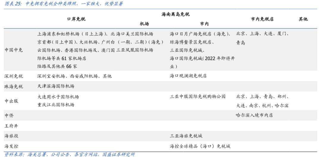 根据我国规定,免税业务主要采用特许经营模式,需要政府批准。截至目前,全国只有8家免税企业获得政府批准,分别为中国中免(包括日上免税行、海免)、深免、珠免、中出服、中侨、王府井、海旅投和海发控。