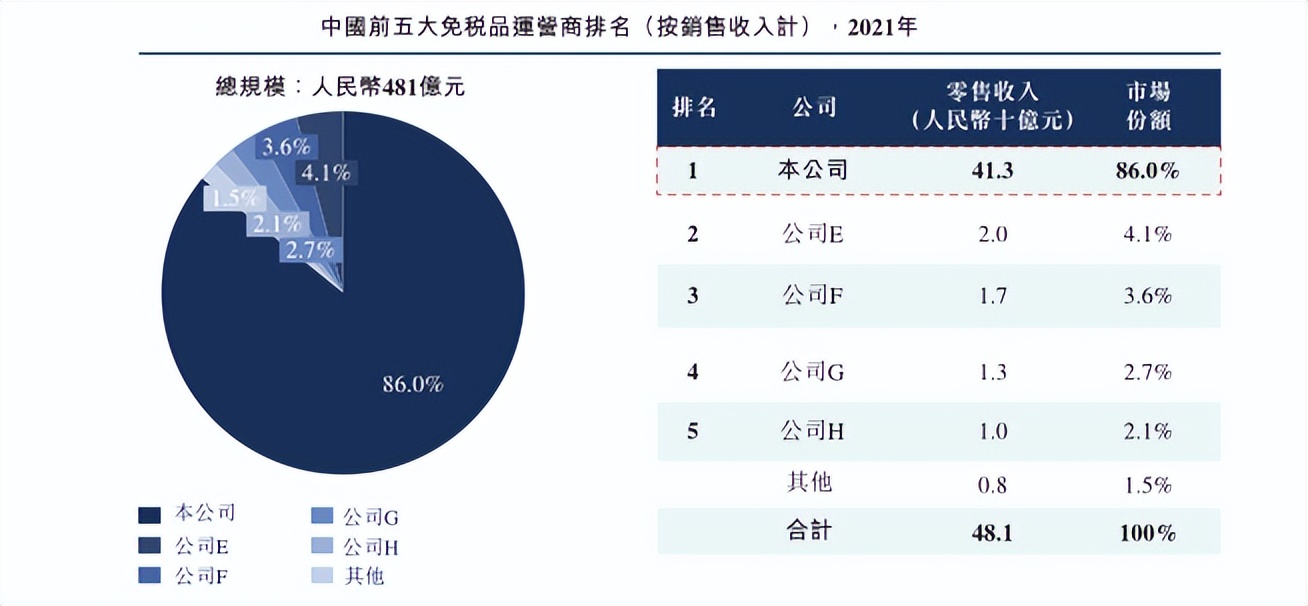 据弗若斯特沙利文报告数据,按照销售收入计算,2021年中国中免全球旅游零售行业市场份额达到24.6%,位居全球第一位。