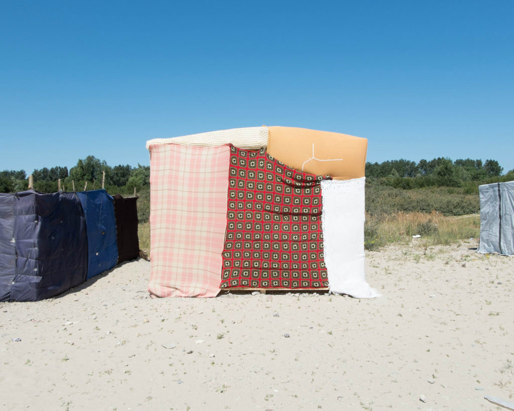 他来了至少15次,用Fuji X-E1和iPhone拍照。他青睐简单直接地拍摄,让每户人家的线条、形状和颜色清楚地展现。这些帐篷和小屋反映了建造者的经验和生活的文化。最复杂的是由寻求庇护的非洲移民建造的,他们需要等待一年多的时间,等各种文书审批允许他们留下。一个苏丹人把他的小屋建成了典型的Nouba山区小屋的样式。